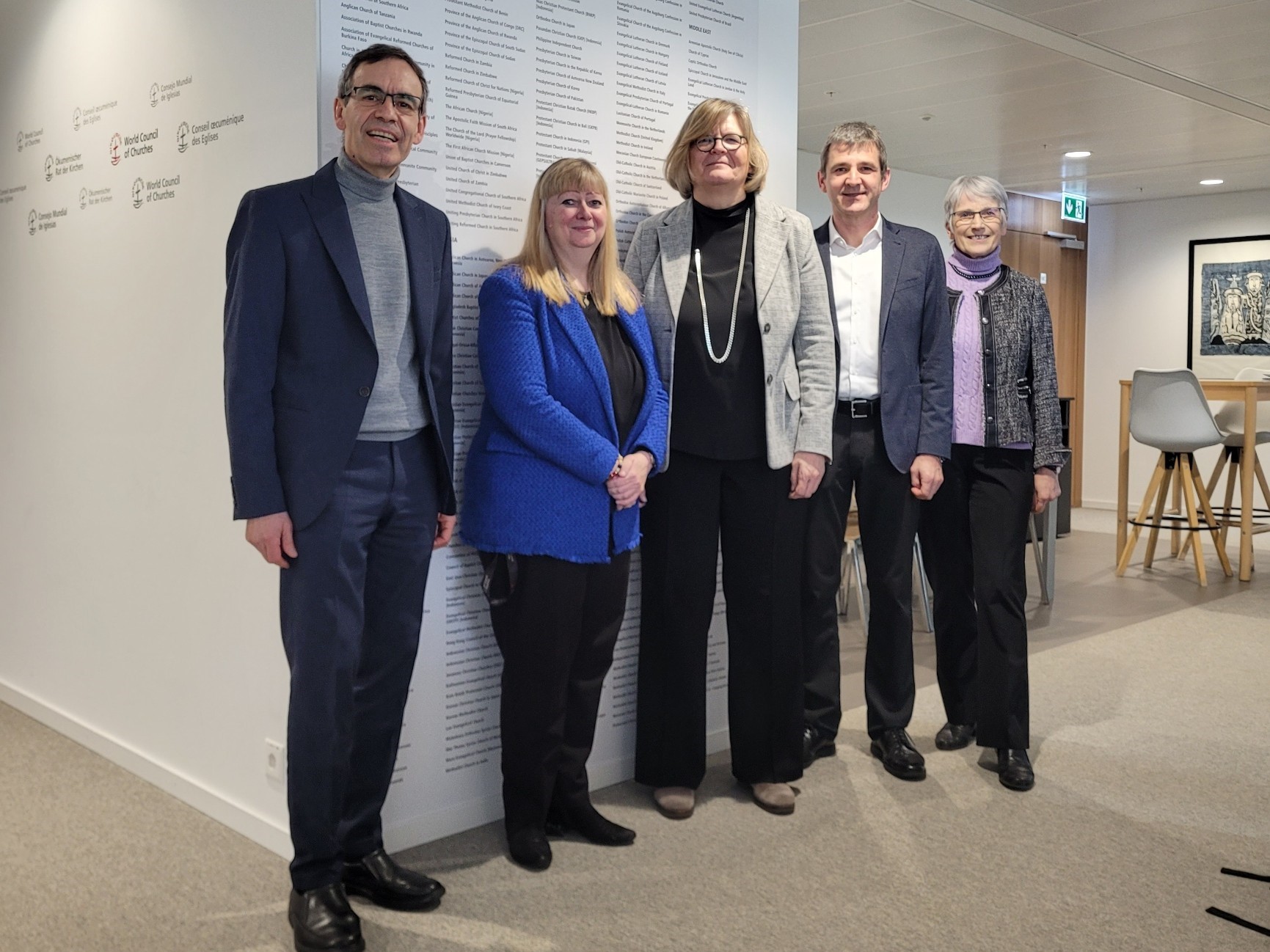 Diese Zusammenarbeit wird am ÖRK so sehr geschätzt, dass aus diesem einfachen Besuch ein kleines Arbeitstreffen mit der Direktorin des Bereichs Kommunikation, der Schwedin Marianne Ejdersten wurde. Nebst Roberto Rossi, Ursula Schmitt und Christian Müggler waren auch Martine Schneider von der Genfer Fokolar-Gemeinschaft mit dabei, sowie Jorge Dias Ferreira, der die Fokolar-Nichtregierungsorganisation «New Humanty» bei der UNO vertritt. «In einem einstündigen Beisammensein hat Marianne Ejdersten uns über die aktuellen Projekte, Anliegen und Hoffnungen des ÖRK's informiert, aber auch von Ursula Schmitt und Roberto Rossi wissen wollen, was sie bewegt. Sie hat sich erfreut und dankbar über die jahrzehntelange Zusammenarbeit mit der Fokolar-Bewegung gezeigt», erzählt Christian Müggler.