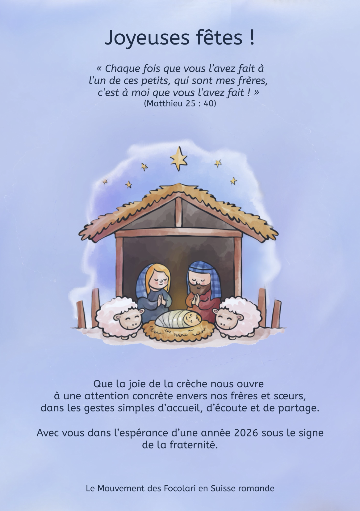 Que la joie de la crèche nous ouvre à une attention concrète envers nos frères et sœurs, dans les gestes simples d’accueil, d’écoute et de par tage.